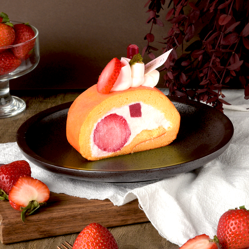 Strawberry cream roll cake